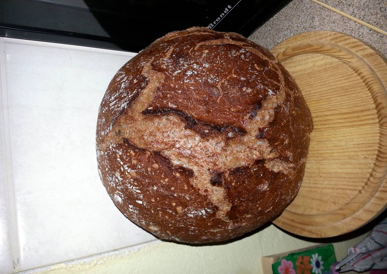 This recipe ask only for few ingredients, your own hands and a time. Result: 500 g loaf.