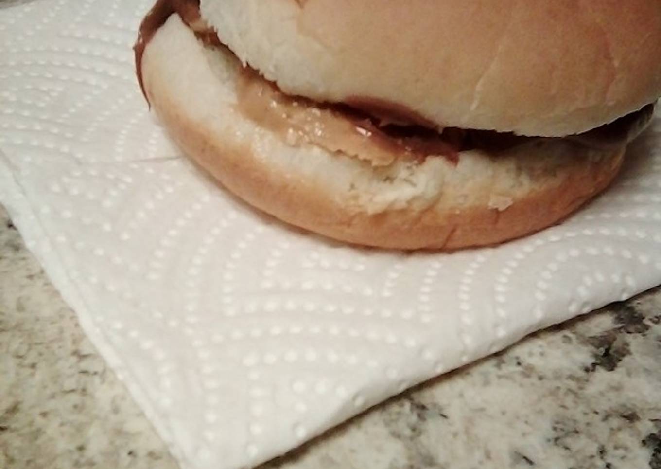 - On bread spread PB on one side then Nutella on the other side as much as you want put together and eat